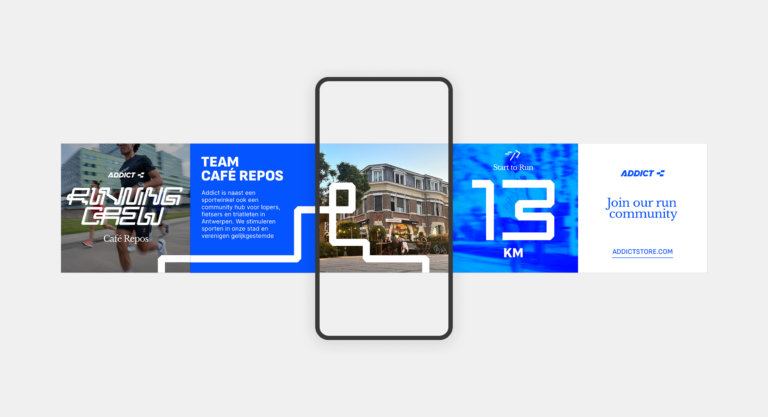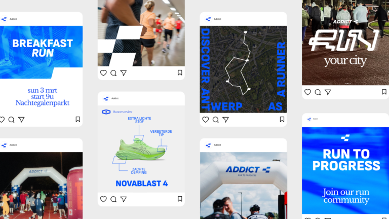 Het activatieplatform "Run Your City" werd uitgebouwd met een sprekend beeld en een eigen lettertype dat de lokale loopgemeenschap presenteert en Addict positioneert als een echte loopbrand. Door samen te werken met lokale ambassadeurs en het organiseren van community-evenementen, versterkt Addict zijn positie als dé hub voor hardlopers in Antwerpen.